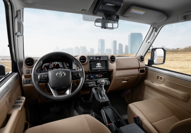 التصميم: يحافظ التصميم المهيب للواجهة الأمامية والرفارف المتدلية على تراث لاند كروزر ويخلق إحساسًا طاغياً بالاستقرار، بينما يجمع تصميم الداخلي ما بين الأمان ومتعة القيادة